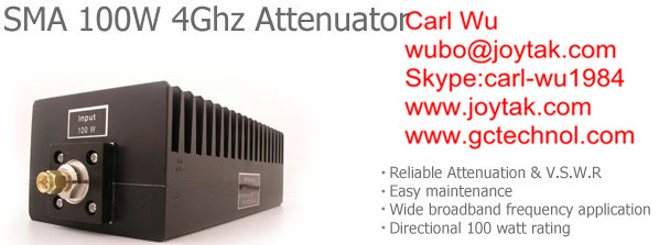 SMA type attenuator 100 Watt 8Ghz SMA plug to SMA jack fixed attenuators / SMA-JK100W4G Images |